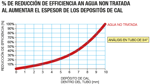 La distinta cristalización inducida por el tratamiento determina una drástica reducción de la capacidad de agregación entre cristales con la consiguiente reducción de la formación de depósitos de cal incrustantes.